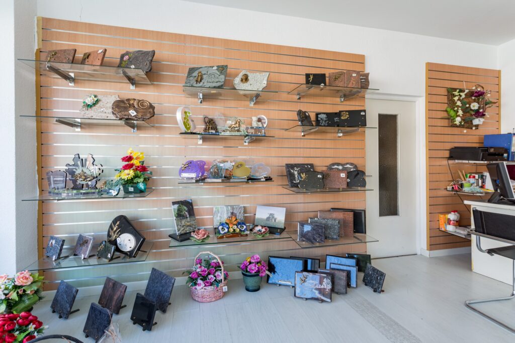 La marbrerie funéraire représente l’ensemble des travaux réalisés au sein d’un cimetière : la confection d’un caveau, la création et la pose d’un monument funéraire mais aussi l’ornement de ce dernier par des plaques, bronzes ou gravures.